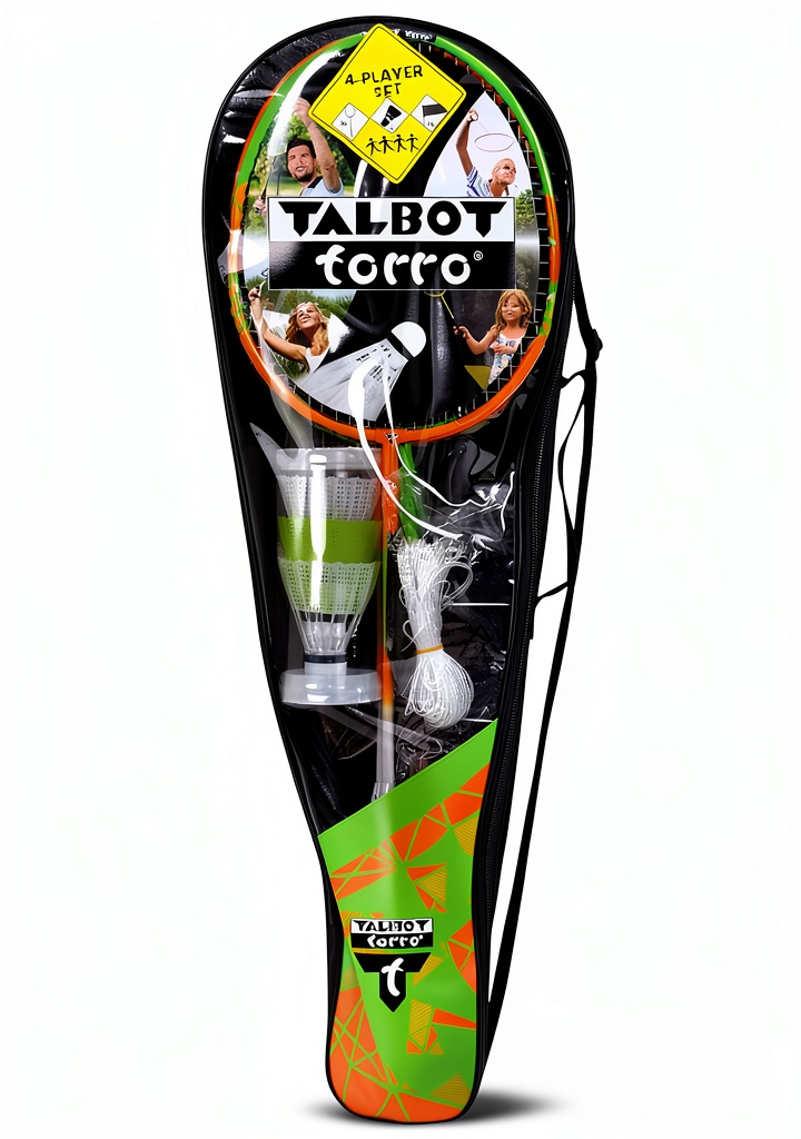 Il set di badminton Talbot Torro è progettato per giocatori avanzati, con dimensioni di 35 x 35 x 35 cm e un peso di 1 kg. Include 4 racchette con testa in acciaio temprato e corde elastiche Lawntex da 0,8 mm, che garantiscono una risposta ottimale e duratura. Il materiale del telaio è in lega di acciaio, combinato con legno per una struttura robusta, mentre la composizione comprende acciaio, legno, poliestere, PVC, PP, PE e gomma per i volani. Il set completo offre una rete in PE di 650 x 50 cm, pali in acciaio da 168 cm, lacci di fissaggio e picchetti in plastica, oltre a 3 volani in plastica con base in sughero. Confezionato in una borsa con chiusura lampo e tracolla, è ideale per un uso per tutto l’anno, senza batterie incluse.