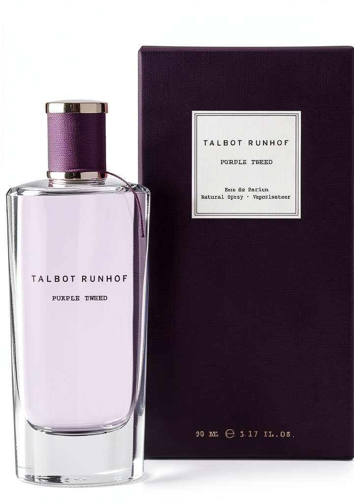 'Talbot Runhof Purple Tweed Eau de Parfum flacone su sfondo elegante'